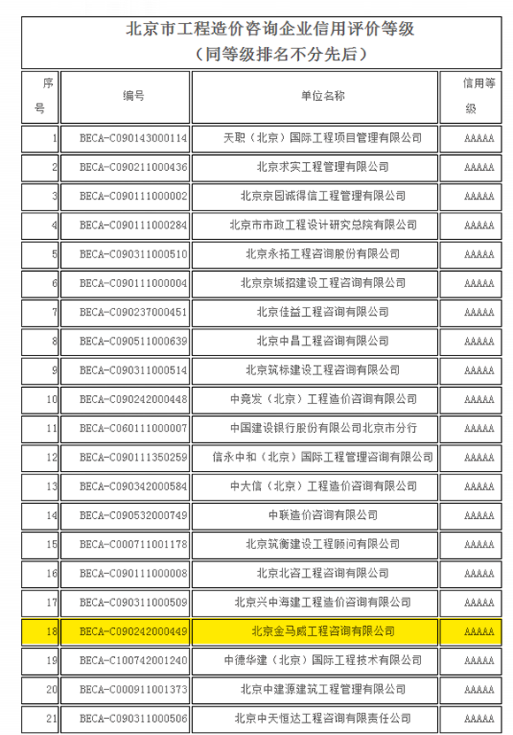 根據(jù)《關(guān)于開展2016年工程造價咨詢企業(yè)信用評價工作的通知》(中價協(xié)[2016]54號)文件的要求,北京市建設工程造價管理協(xié)會(簡稱京價協(xié))開展了北京市工程造價咨詢企業(yè)信用評價工作。