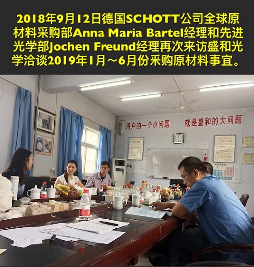 2018年9月12日、ドイツ?ShhTT社の世界原材料購買部アンナマーカー社長と先進光學部ジョチFreundマネージャーが再び訪れて光學交渉の仕入れを行ってきた